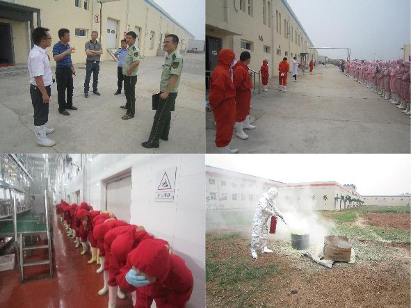 吉林德惠寶源豐禽業(yè)發(fā)生特大事故,造成120人遇難,在全國安全月伊始之時(shí)發(fā)生如此重大事故,教訓(xùn)慘痛。為吸取這一慘痛的經(jīng)驗(yàn)教訓(xùn),落實(shí)于董事長關(guān)于安全整頓的要求,進(jìn)一步增強(qiáng)員工安全意識和自我救助能力,公司于2013年6月7日在各分廠車間、制冷機(jī)房和廠區(qū)空地三處演習(xí)地點(diǎn)舉行了緊急疏散、液氨泄漏緊急處置和消防滅火的實(shí)戰(zhàn)演練。